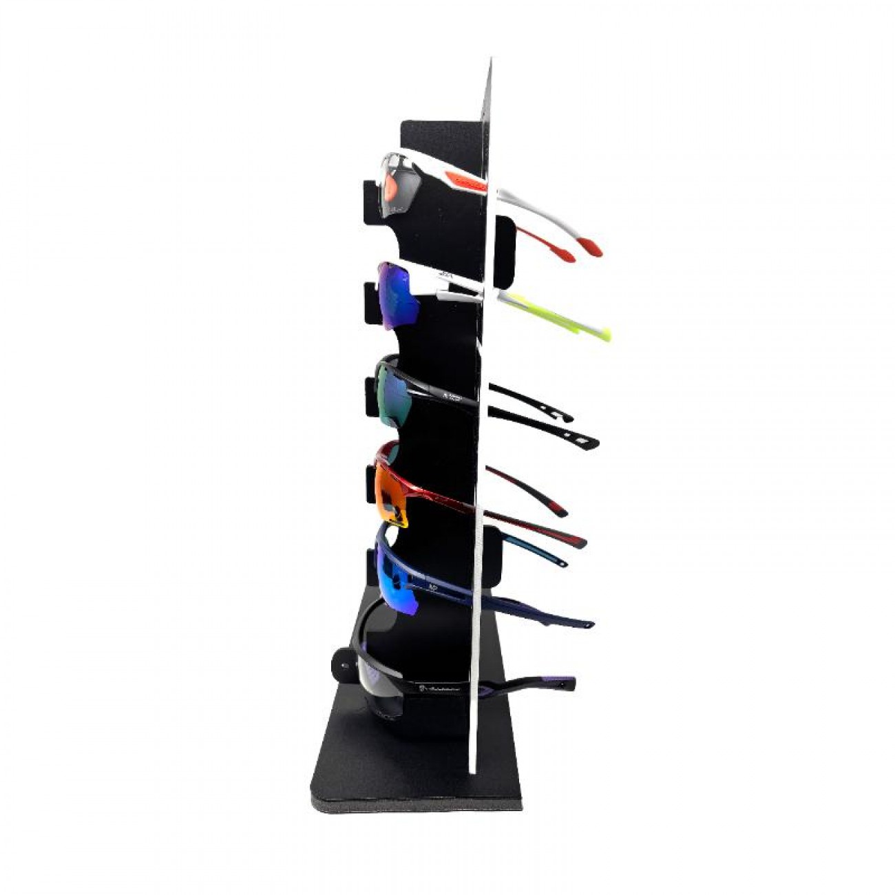 Incluye un expositor profesional y seis modelos premium, cada uno con su estuche y funda, creando una presentación impecable y lista para el punto de venta.