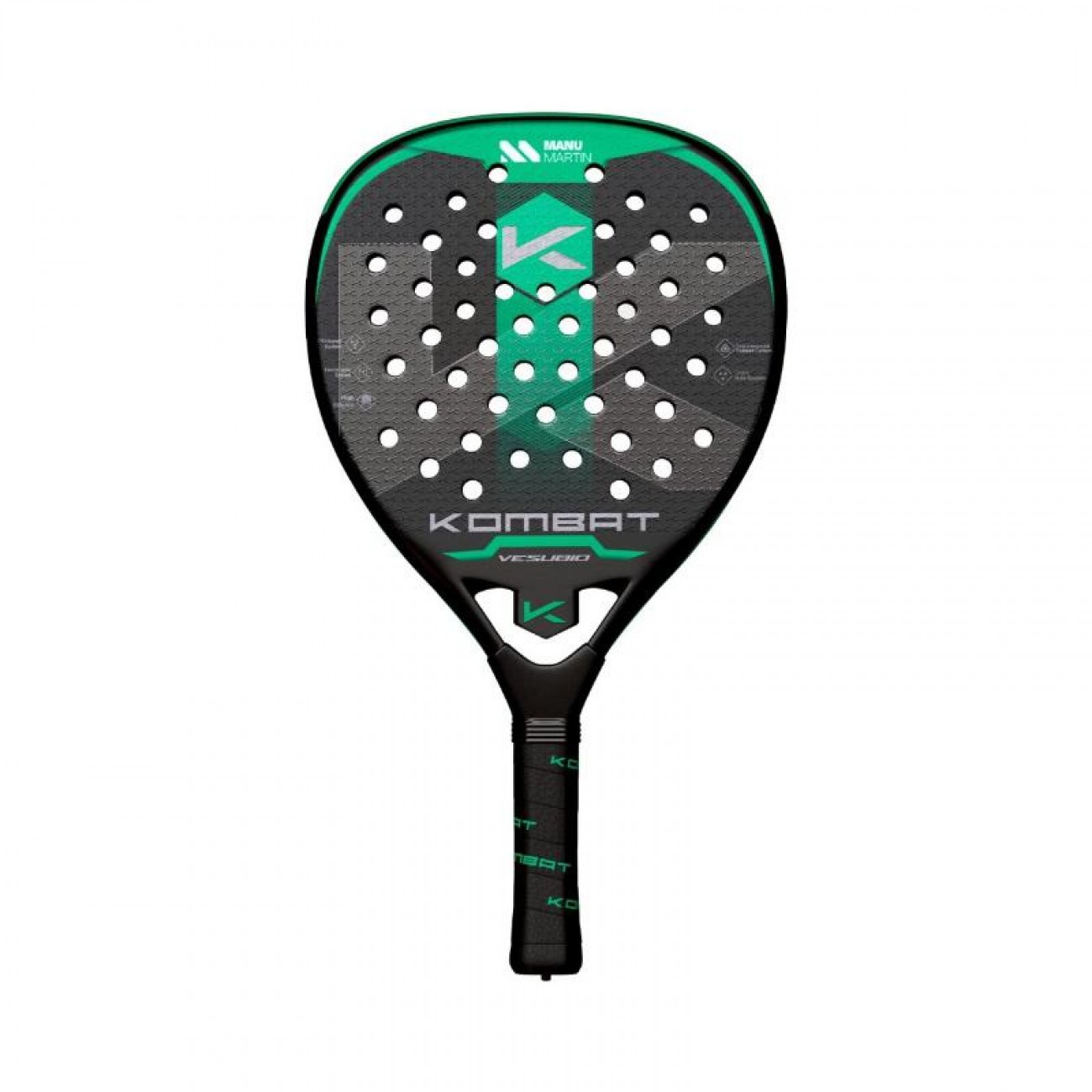 La Pala Kombat Manu Martín Vesubio es ideal para jugadores avanzados y profesionales que buscan una pala que potencie sus habilidades y se adapte a su estilo de juego. Con materiales de primera calidad y un diseño innovador, esta pala proporciona un rendimiento de alto nivel en cada golpe.