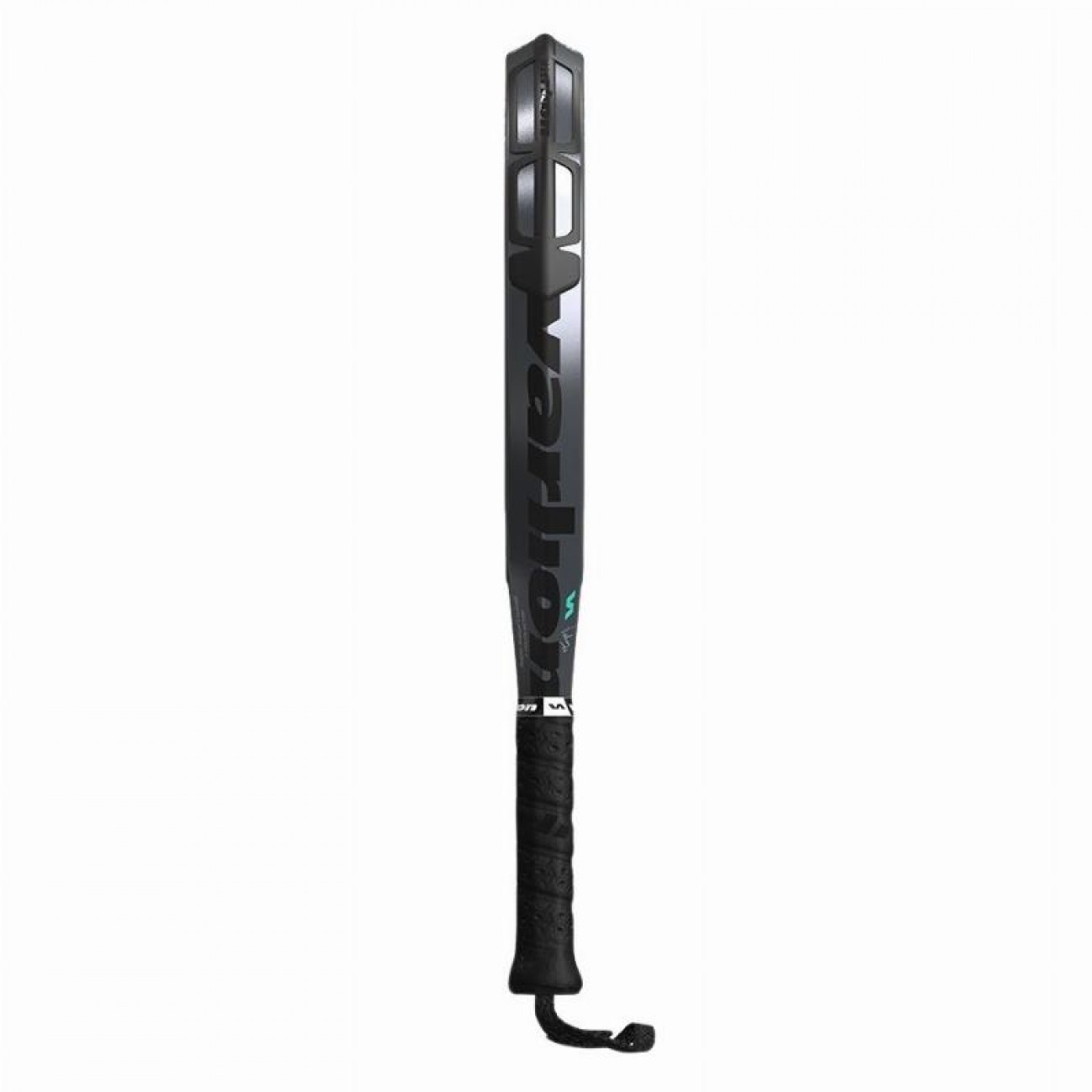 Varlion va más allá con su sistema Handlesafety, que incorpora un nuevo diseño de cuerda de sujeción: atraviesa completamente la empuñadura y sale por ambos laterales, lo que brinda mayor seguridad, firmeza y comodidad al jugador durante los intercambios más intensos.