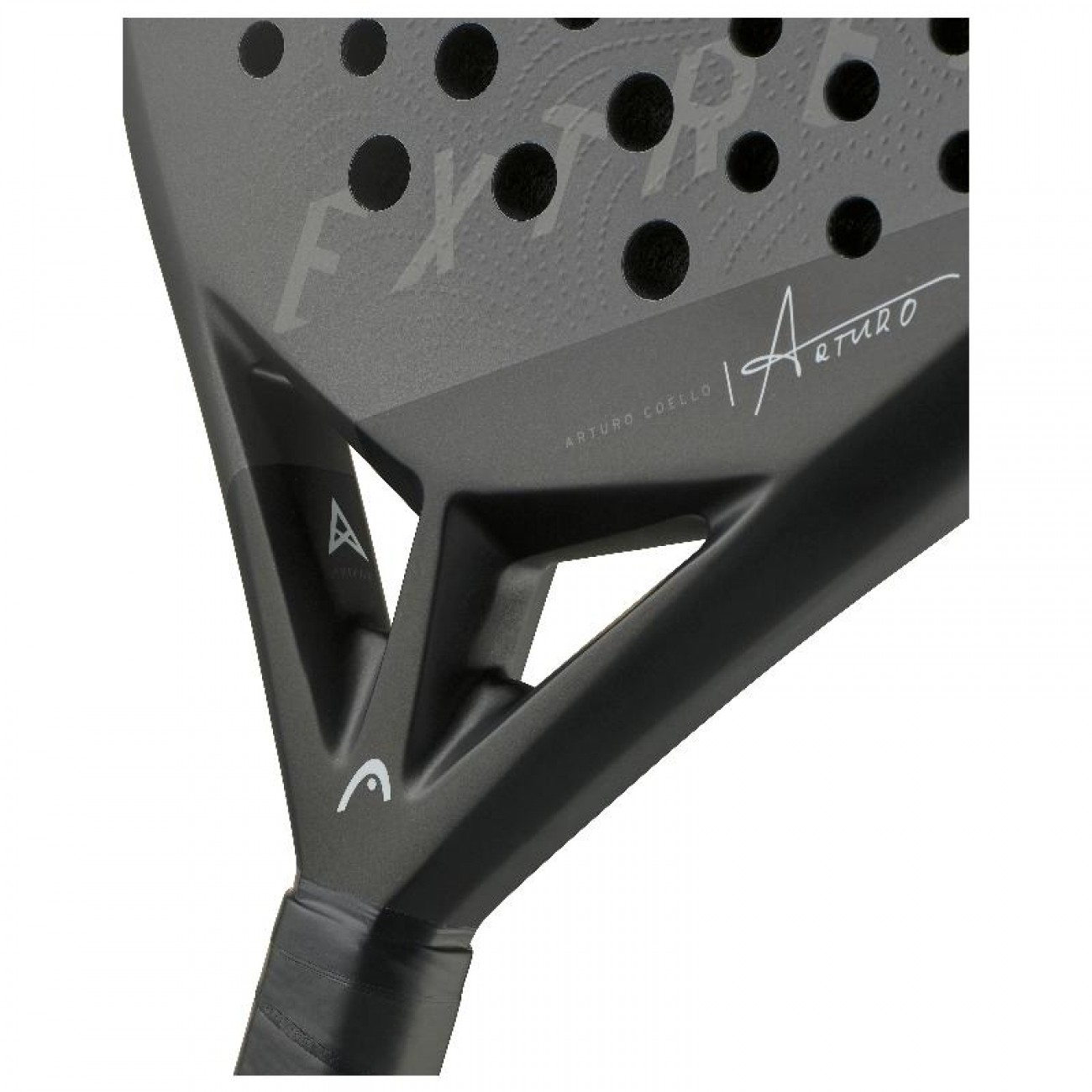 ostenta um design exclusivo escolhido por Arturo Coello, que realça a sua estética elegante e exclusiva. Para um visual e imagem verdadeiramente premium, o design inclui a assinatura de Arturo. Esta raquete em forma de diamante combina um design único com extrema potência, tornando-a perfeita para jogadores experientes e profissionais.