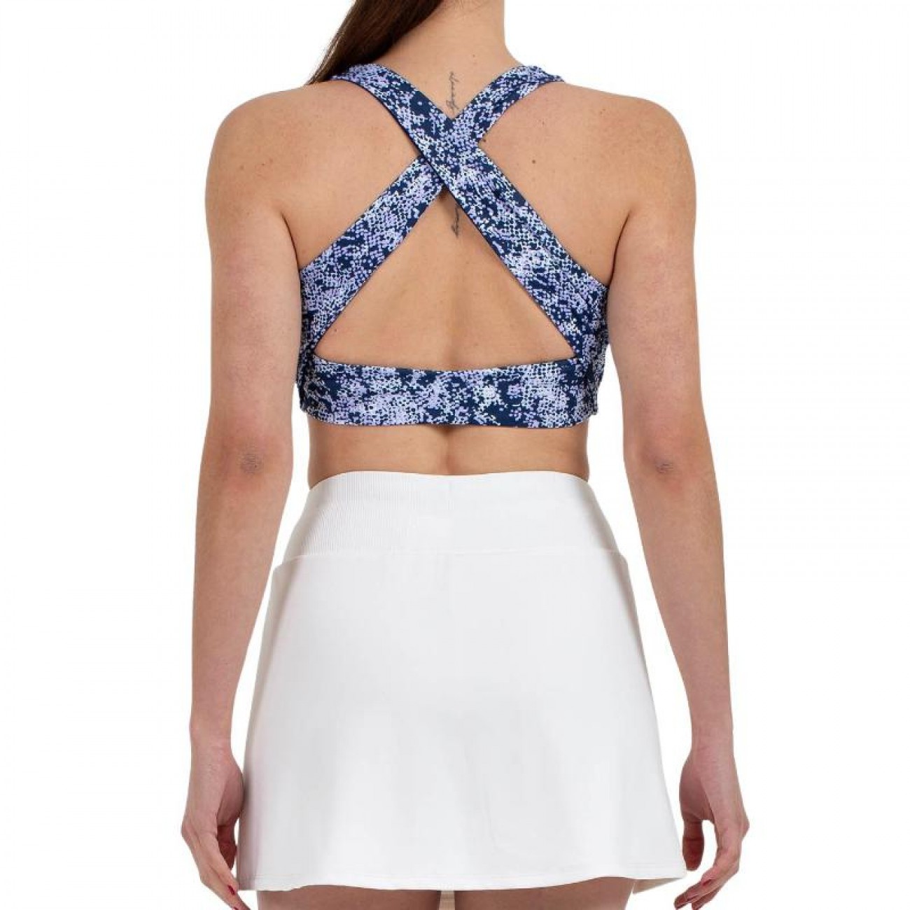 Seu design com alças cruzadas, tecido sublimado e elástico inferior garante um ajuste seguro, enquanto os coletores internos de espuma oferecem maior suporte sem sacrificar a leveza.