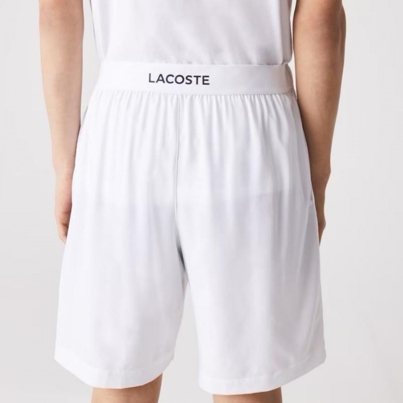 - Cinturilla con elastico e inscripcion Lacoste en la parte trasera