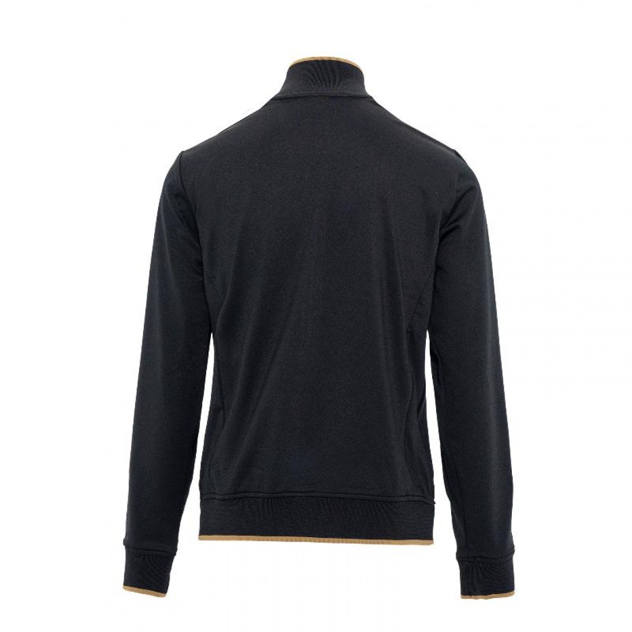-Canalé en contraste dorado en cuello, puños y bajo.